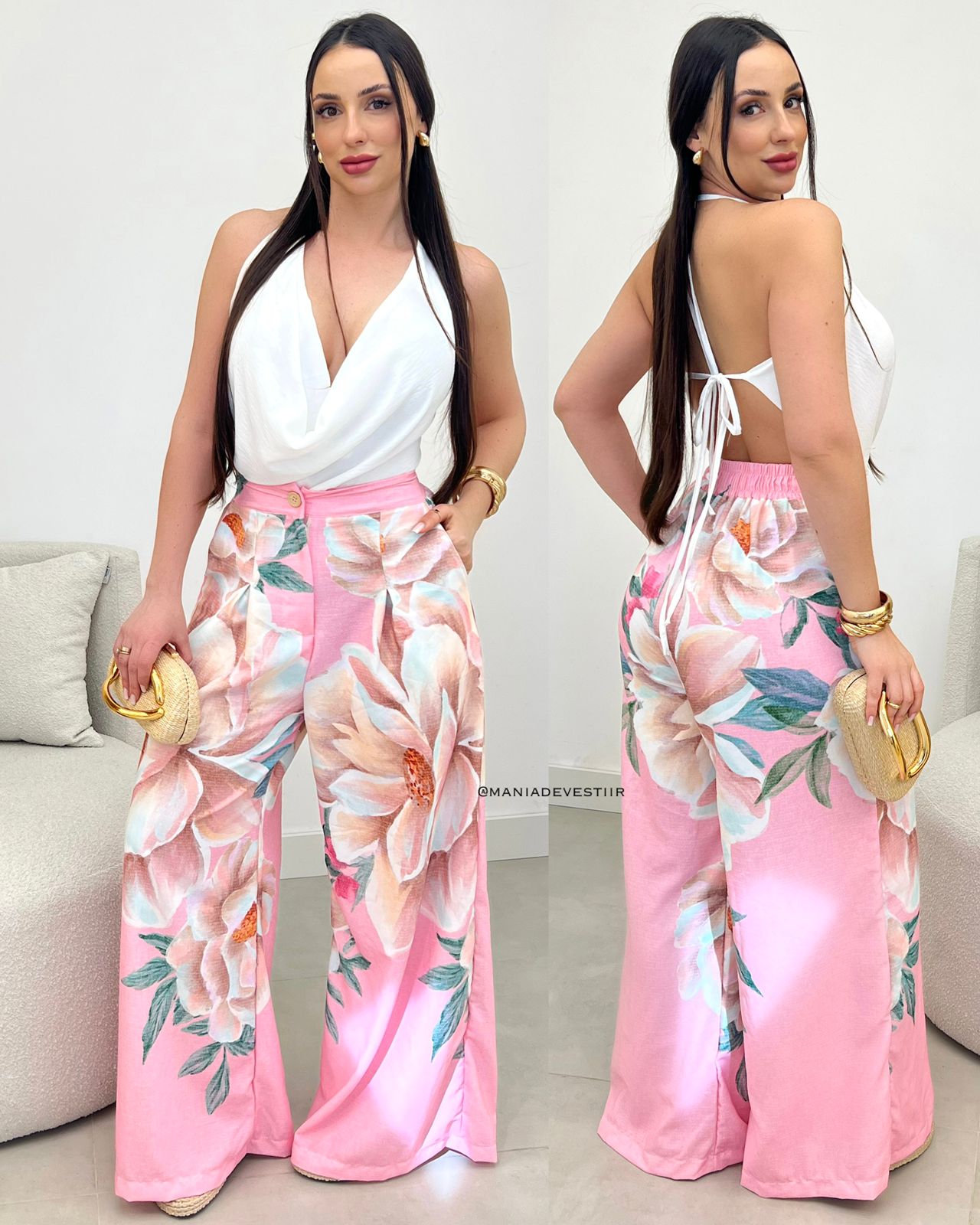 - calça modelo pantalona;
