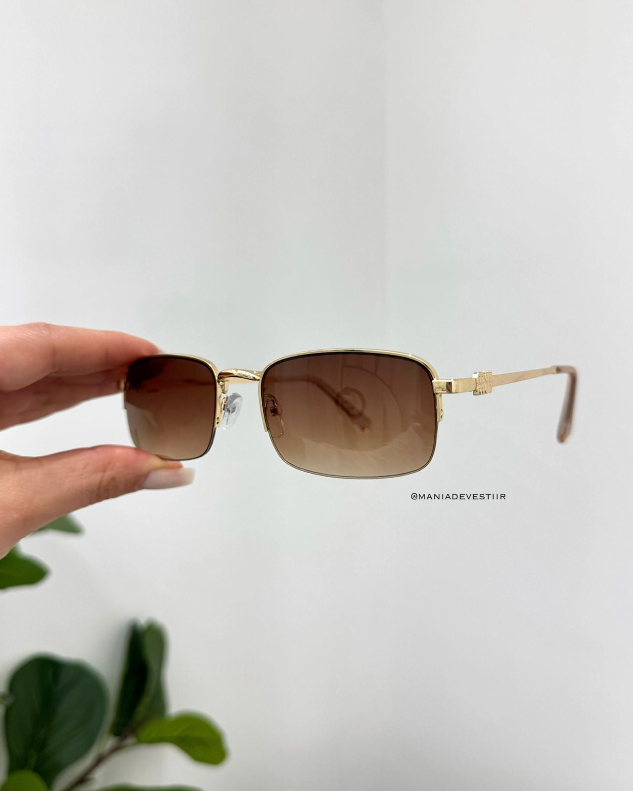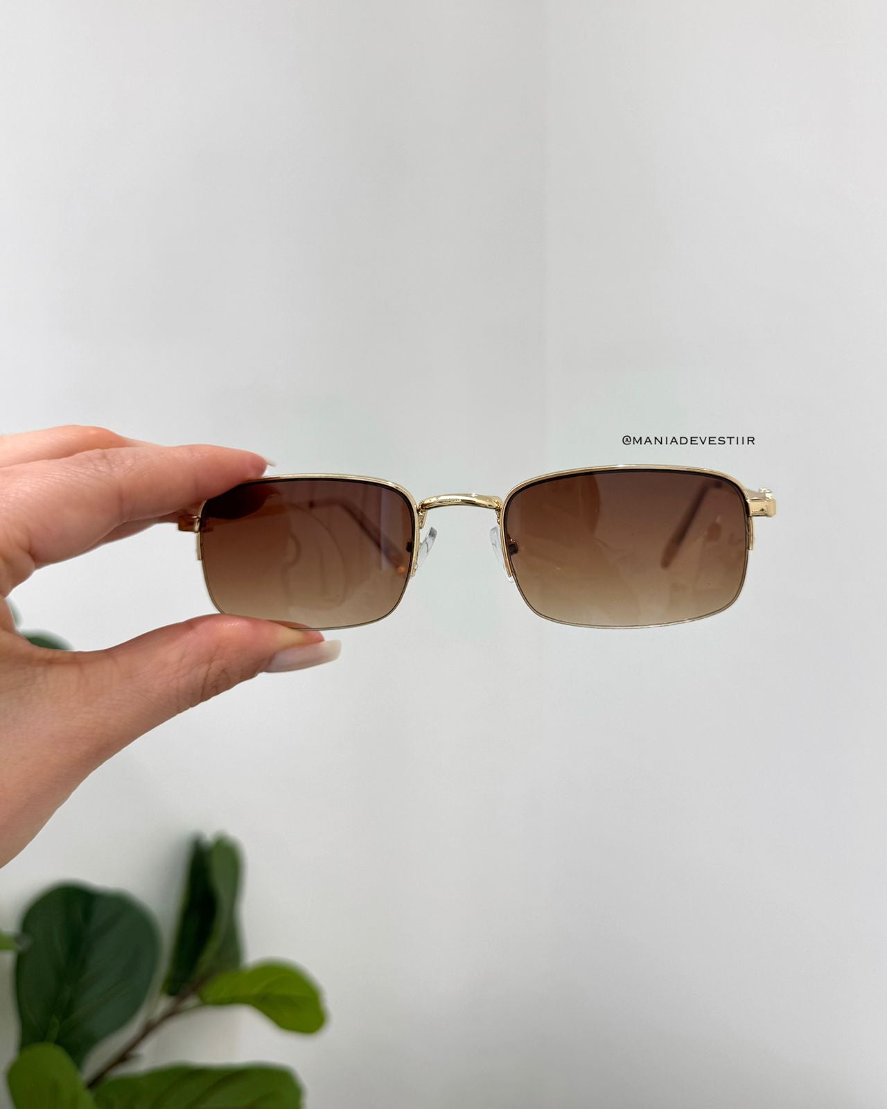 - lente na cor marrom;