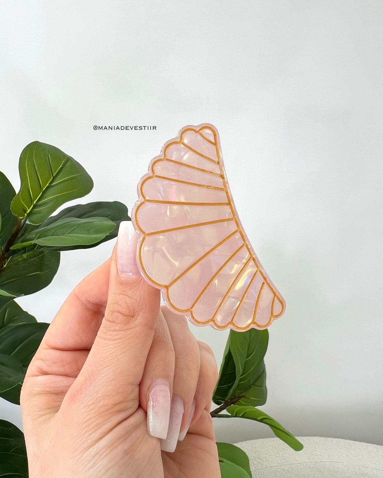 - formato de concla do mar com detalhes dourado;