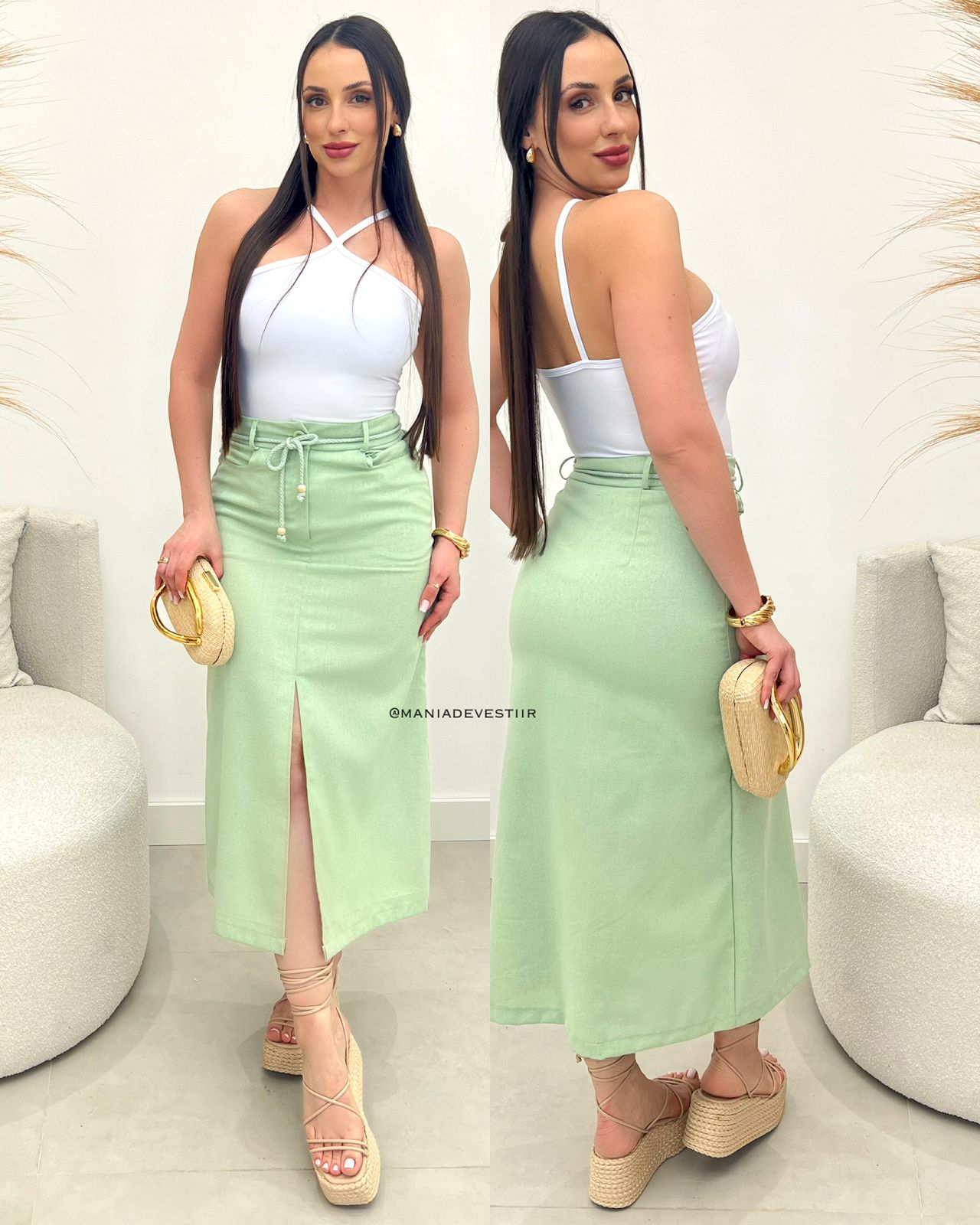 Saia Linho Damiana Verde Menta 110192